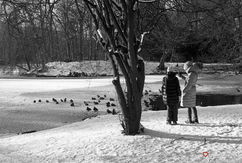 Die Canon P ist eine der, in meinen Augen schönsten Kameras, die jemals gebaut wurden. (Hatte noch nie ein Leica M6 in den Händen..) 100% mechanisch, gebaut wie ein Panzer und ohne Batterien. Es ist ein Pläsier mit dieser Kamera zu fotografieren. Mit einem Ilford FP4+ und dem 50mm 1.4 macht Street einfach Spaß. An einem schönen Tag einfach loslaufen und den Rhein mit der Altstadt (tagsüber) genießen, herrlich. Die Kombination aus historischem Flair, rheinischer Lebensfreude und der offenen Weite des Flusses macht die Altstadt und den Rhein zu einem der beliebtesten Orte Düsseldorfs.